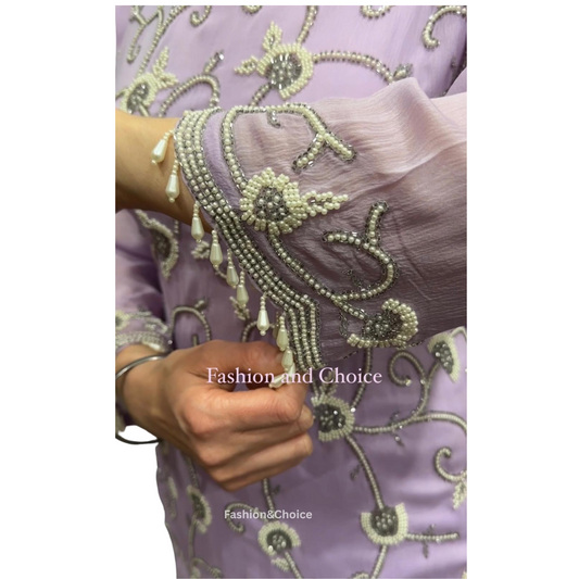 Lilac Luxe – Light Purple Garara Set with Pearl and Cut Dana Embroidery