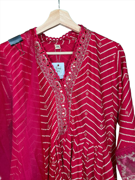 Beautiful Nayara Cut Hot Pink Suit with Organza Dupatta